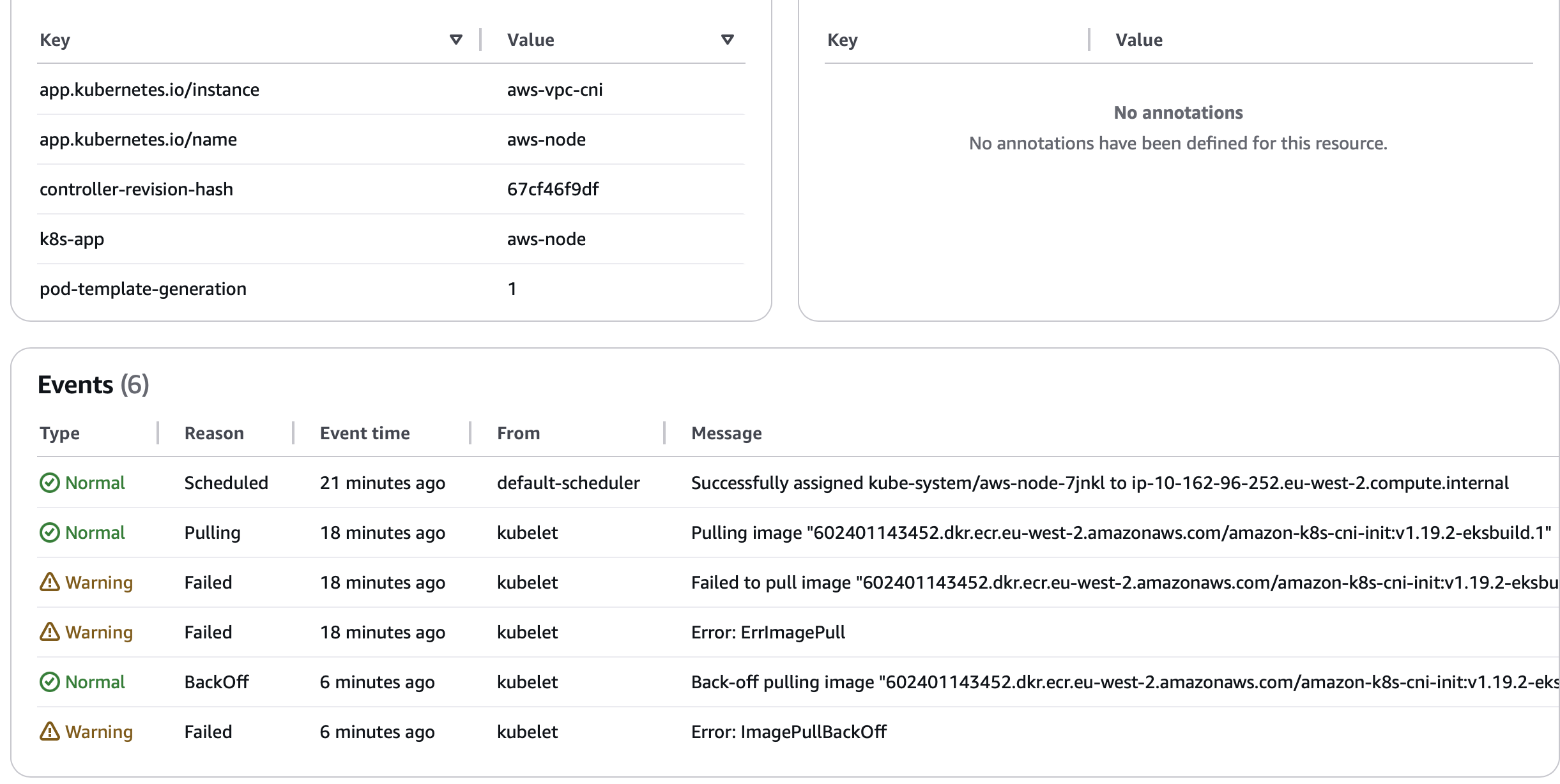 EKS managed worker nodes uses Amazon linux, so their repo is also different, which is S3 backed. Finally, I realised a new S3 endpoint policy rolled out in the VPC which only permits access to S3 traffic from within organization unit and drop everything else. Well that was it, disabling the policy made sure S3 is reachable again, and hence I can reach AWS default repo and registeries, in this case, https://602401143452.dkr.ecr.eu-west-2.amazonaws.com/amazon-k8s-cni-init:v1.19.2-eksbuild.1